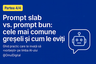 Vezi cele mai frecvente greșeli în prompting și cum să le corectezi. Exemple comparative slab vs. bun și exerciții practice pentru rezultate mai clare.