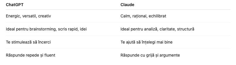 Îți scrii ideea principală cu ChatGPT → o rafinezi cu Claude.