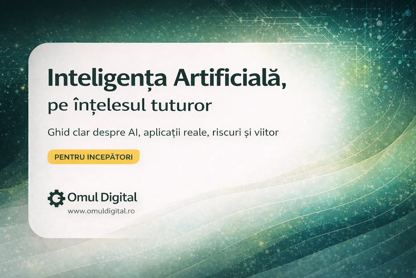 Acest ebook a fost creat ca o introducere în inteligența artificială, explicată într-un mod clar și accesibil. Scopul materialului nu este să transforme cititorul într-un specialist, ci să ofere o bază solidă de înțelegere asupra modului în care funcționează AI și asupra rolului pe care această tehnologie începe să îl aibă în mediul digital.